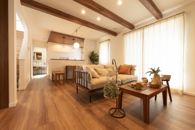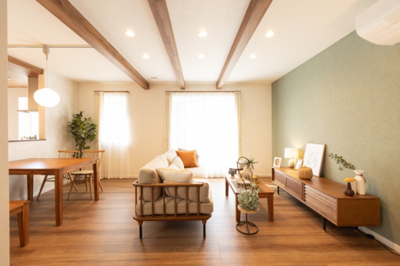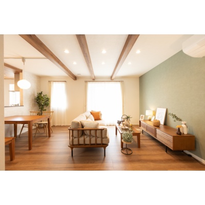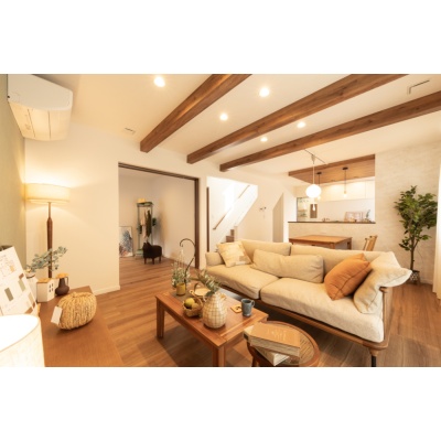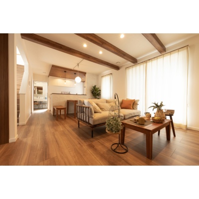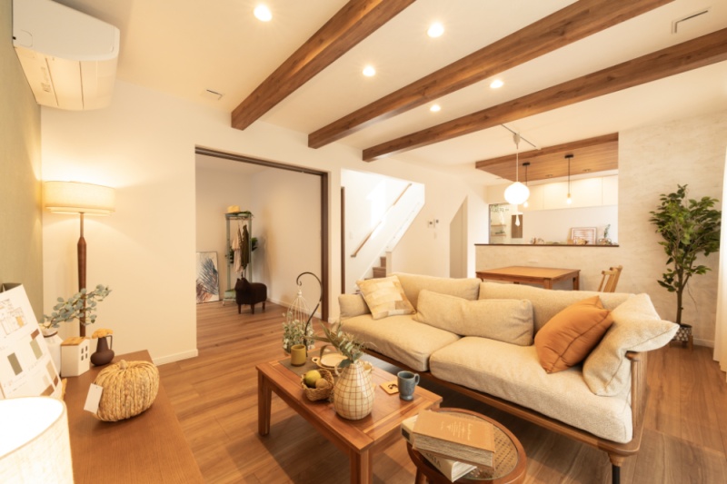 【リビング】 天井に化粧梁を施したLDKは、木の質感がやさしく包み込むような心地よさ。 (2025年10月撮影)