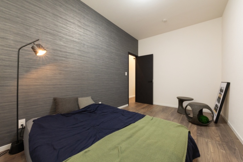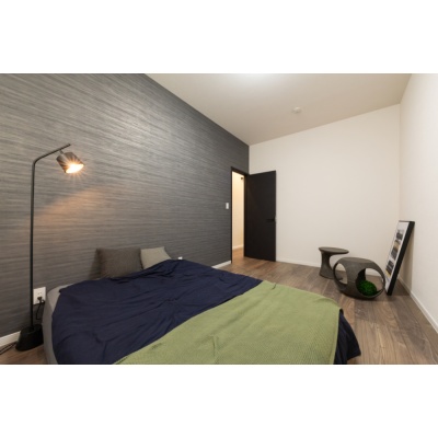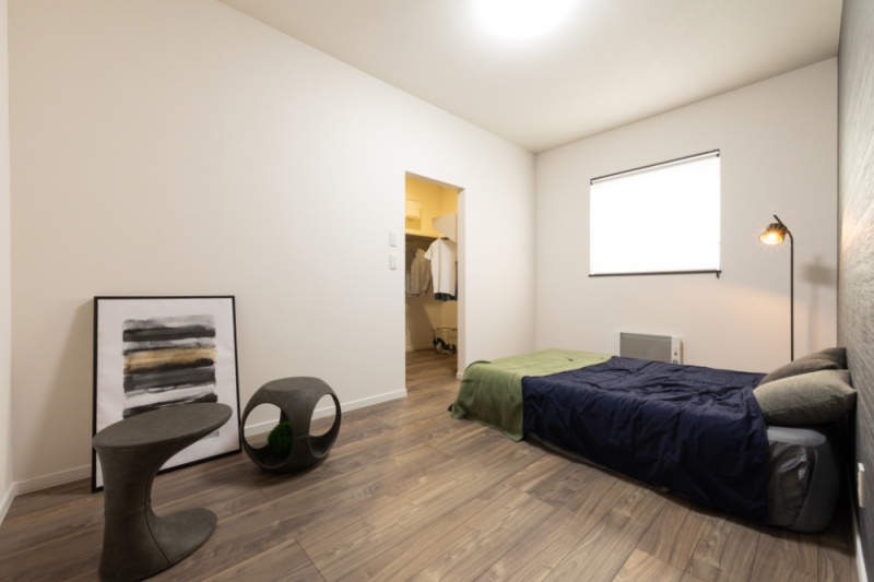 【寝室】7.5帖のゆとりある寝室に、落ち着きのあるアクセントクロスをプラス。(2026年1月撮影)