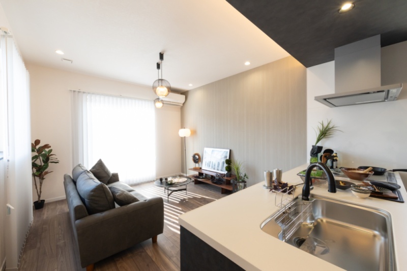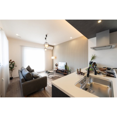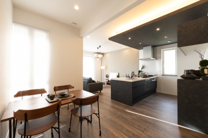 ここに注目!【シック和モダン×平屋】心地よく暮らす大人の住まい ■ブラック×ウォルナットの落ち着いた空間に和の趣をプラス ■ハイスタッド&ハイドアで、開放感あふれるLDK ■下がり天井と間接照明、大ぶりペンダントで上質な灯りを演出 ■カウンター+収納付きのフルフラットキッチン ■使い勝手のよい家事動線&将来も暮らしやすいワンフロア設計 ■W1200の造作風洗面台にグレーボウルを採用した洗練デザイン ■日用品やメイク用品をたっぷり収納できるUT棚付き 【周辺環境】 ・愛国小学校 徒歩15分(約1200m) ・景雲中学校 徒歩10分(約800m) ・保育園キッズランド 徒歩13分(約1000m) ・ザ・ビッグ文苑店 徒歩7分(約550m) ・ローソン釧路文苑店 徒歩9分(約650m) ・ツルハドラッグ釧路文苑店 徒歩8分(約600m) ・江南通クリニック 徒歩13分(約1000m) ・釧路豊川郵便局 徒歩18分(約1400m) ・愛国3号公園 徒歩4分(約300m)