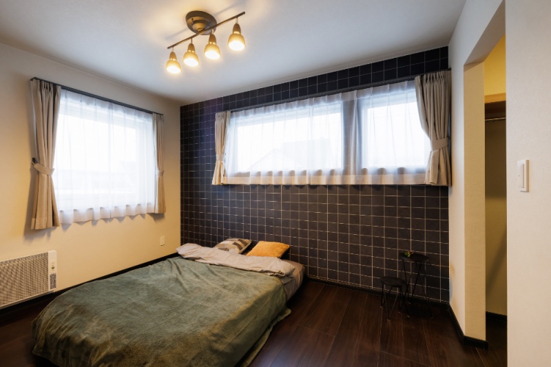 【寝室】 アクセントクロスが映える広々とした主寝室。ウォークインクローゼットも完備。 (2026年1月撮影)