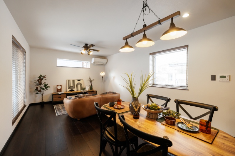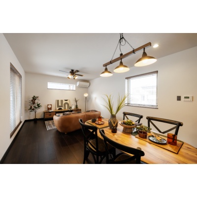 【リビング】 天井にはシーリングファンを設置し、デザイン性と快適性を両立した、開放感のある空間。 (2026年1月撮影)
