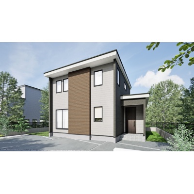 【完成予想図】 快適でゆとりのある暮らしを実現する4LDKが登場。シンプルでおしゃれな外観のお住まいが完成予定です。