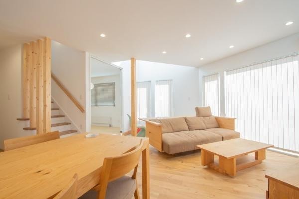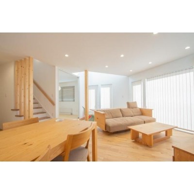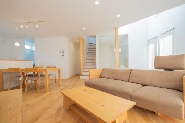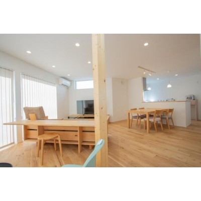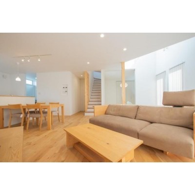 ここに注目!【商談中】★1月末までの新春キャンペーン★200万円OFF 『ちょっと大人の木の家。』やわらかな光と木のぬくもりを感じる贅沢空間。 自然の力を利用して快適で豊かに暮らせる家へ。 南西の大きな窓から陽の光がたくさん降り注ぐリビング。夜には温かみのある灯りが包み込む、そんな心地よい空間が広がります。 シンプルでありながらもどこか個性的なデザインもこの家の魅力のひとつです。 ※建物代金には家具を含みます。 お気軽に、ウッディークラフトまでご連絡下さい。
