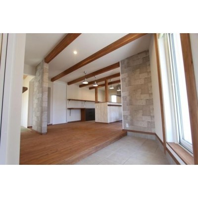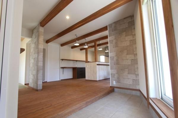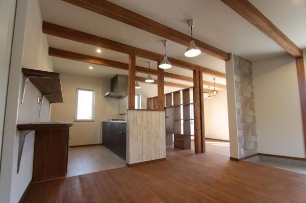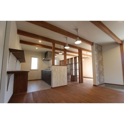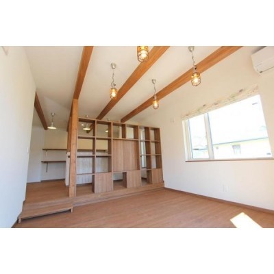 ここに注目!『ウッディークラフトの家。』 空と木に包まれて、暮らしを楽しむ。 ウッディークラフト施工の築11年のお家。 木の質感を活かした室内は、梁や造作収納が空間にやさしい表情を与え、住むほどに愛着が深まる住まいです。ウォークインクローゼットや各所の収納も充実し、日々の暮らしやすさにも配慮。 デザインと実用性、どちらも大切にした一邸です。 外からの視線を抑えつつ、室内とつながるテラスを設けた設計は、光と空を身近に感じる心地よさ。 ダイニング・リビングを分けた間取りで、生活にメリハリを持たせながら、家族それぞれが落ち着いて暮らせます。