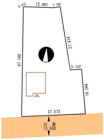 接道状況 一方 - 南東側幅13.50mの公道に27.50m接道