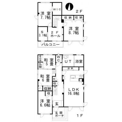 | 間取り | 5SLDKLDK16.8帖 和室6.0帖 和室5.0帖 洋室6.6帖 洋室8.7帖 洋室7.7帖 S(納屋)3.1帖 |