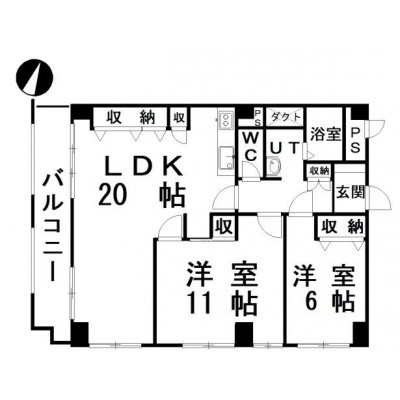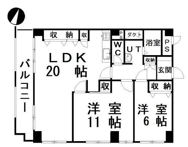 2LDK(74.26m²)└ LDK20帖 洋室11帖 洋室6帖