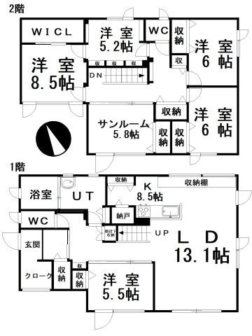 | 間取り | 5SLDK洋室5.5帖 洋室5.2帖 洋室6.0帖×2 洋室8.5帖 S(納屋)5.8帖 |