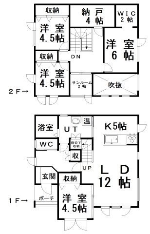 | 間取り | 4SLDKLD12.0帖 K5.0帖 洋室4.5帖 洋室6.0帖 洋室4.5帖×2 S(納屋)4.0帖 |