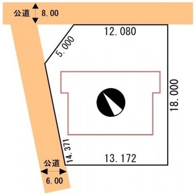 建物の階建 地上2階建 間取り 1LDK 駐車場 接道状況 二方(除角地) - 二方(除角地) 北東側12.0m 公道 接道幅員8.0m/北西側14.3m 公道 接道幅員6.0m