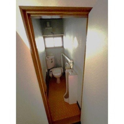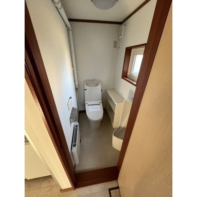 窓付きトイレ。清潔感あり、換気も良好。
