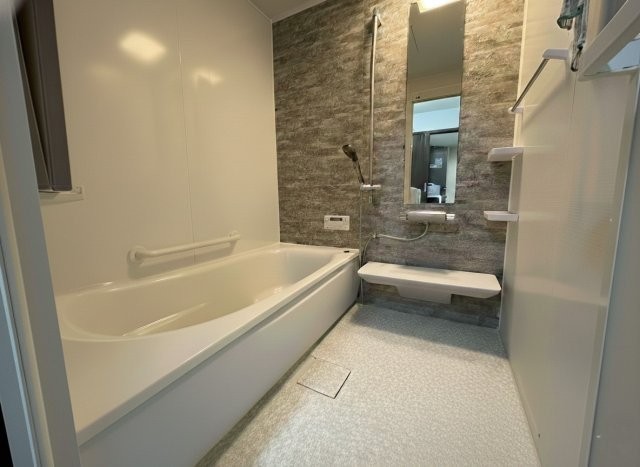 清潔感あふれる明るいバスルーム♪高級感のある壁面が魅力です。