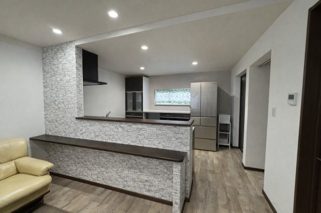 スッキリした間接照明と広い窓。家族が自然と集まる心地よい場所