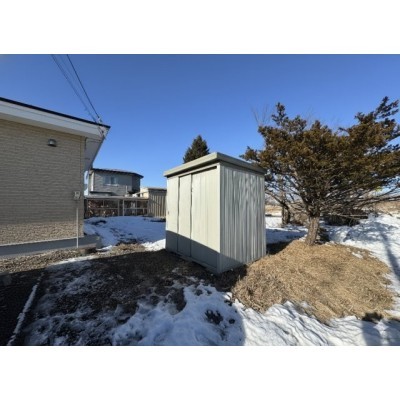 広々とした敷地に便利な物置を完備。屋外用品の収納も安心です。