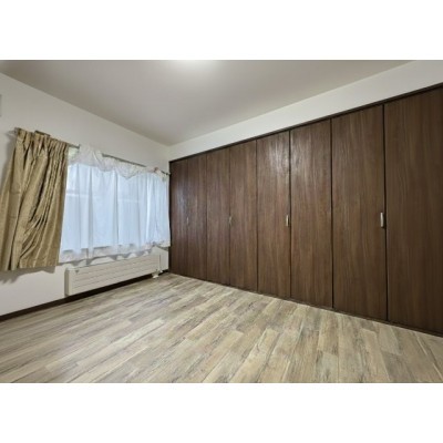 壁一面の大容量収納!衣類も小物もスッキリ片付く機能的な洋室。