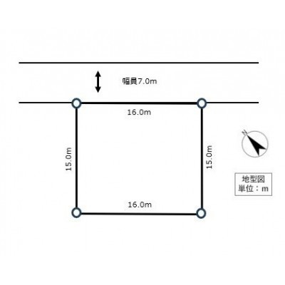 総区画数-/- 接道状況 一方 - 北東側幅16.00mの公道に7.00m接道