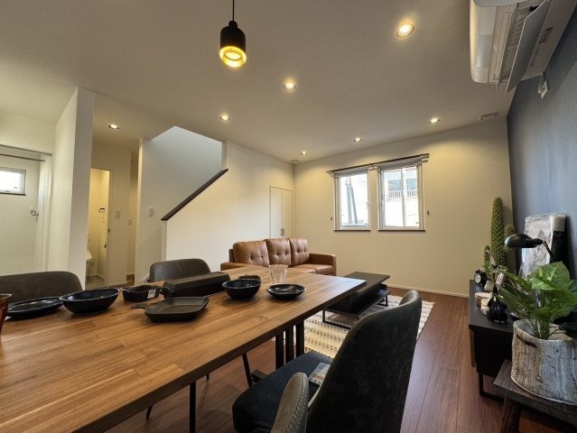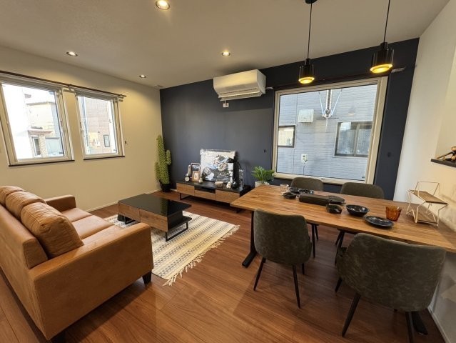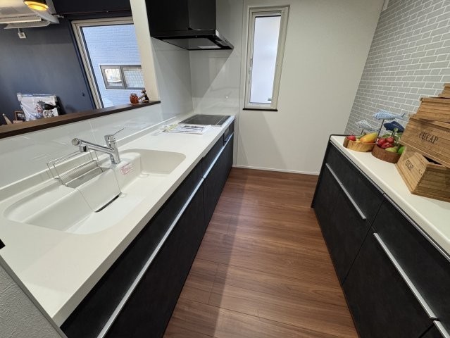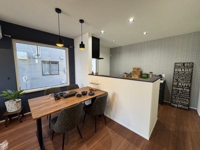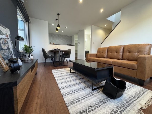 ここに注目!釧路市愛国東1丁目に、株式会社近藤工務店が手がける「Kospaモデルハウス」が誕生しました!ネイビーのアクセント壁が上質な空間を演出するLDKには、コーディネートされた家具が配置されており、大きな窓から差し込む陽光の中で理想の暮らしをすぐにスタートしていただけます♪カフェのような雰囲気を楽しめるレンガ調の対面キッチンには、まとめ買いにも便利なパントリー収納を完備!さらに洗面室と脱衣室を分けた「セパレート設計」を採用することで、入浴中も気兼ねなく洗面台を使用できるプライバシーに配慮した動線を実現しました。2階の各洋室にはそれぞれウォークインクローゼット完備☆家族みんなの衣類や荷物がすっきり片付きます◎このモデルハウスは、ウレタン断熱とトリプルサッシの高い断熱性能が自慢。さらに冷暖房エアコン4台が付いているので、寒い釧路の冬も一年中快適な室温を保てます!初期費用ゼロのリース型太陽光パネル付きで、家計にも優しいエコな暮らしを実現。家具と外構舗装も付いてくるため、引っ越し後すぐに快適な新生活を始められます♪ぜひこの機会に、安心と快適が詰まったモデルハウスを、ご家族でご体感ください!