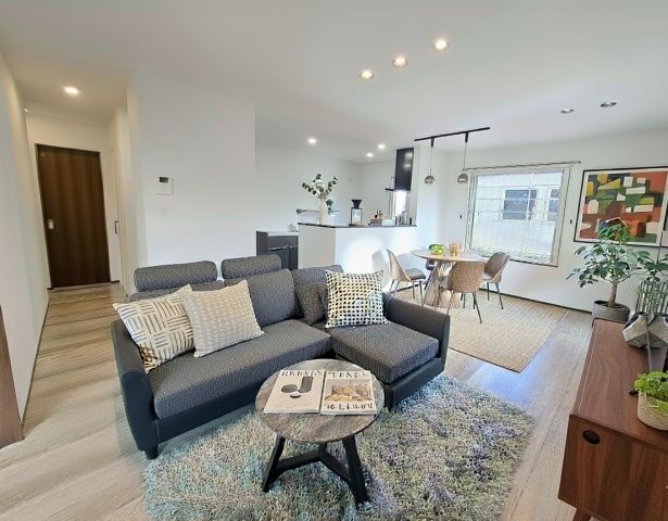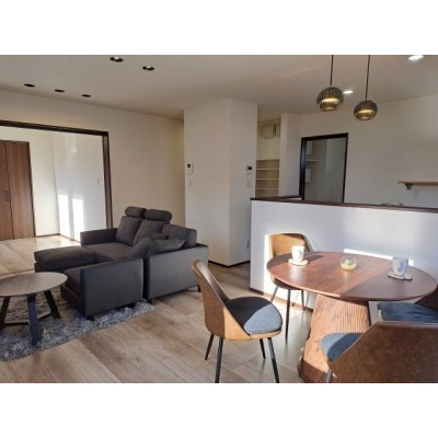 家具付き!開放的なLDKは、白壁と木目調で洗練された空間。