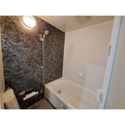 デザイン壁がお洒落。ゆったりサイズの快適なシステムバス。