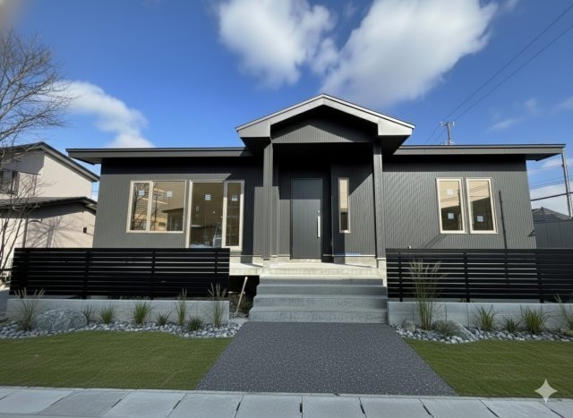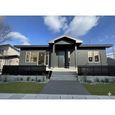 モダンな外観と統一感ある外構の平屋 ※外構は施工例です