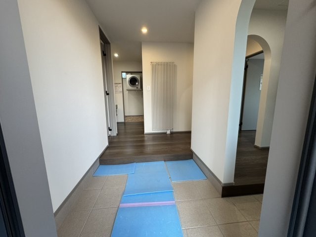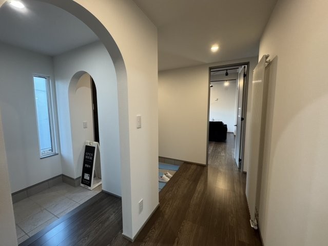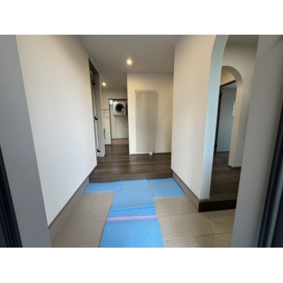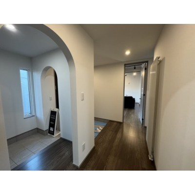 おしゃれなアーチ!温かみのある広々玄関ホール