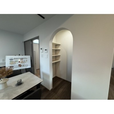 おしゃれなアーチ!大容量の可動棚パントリー