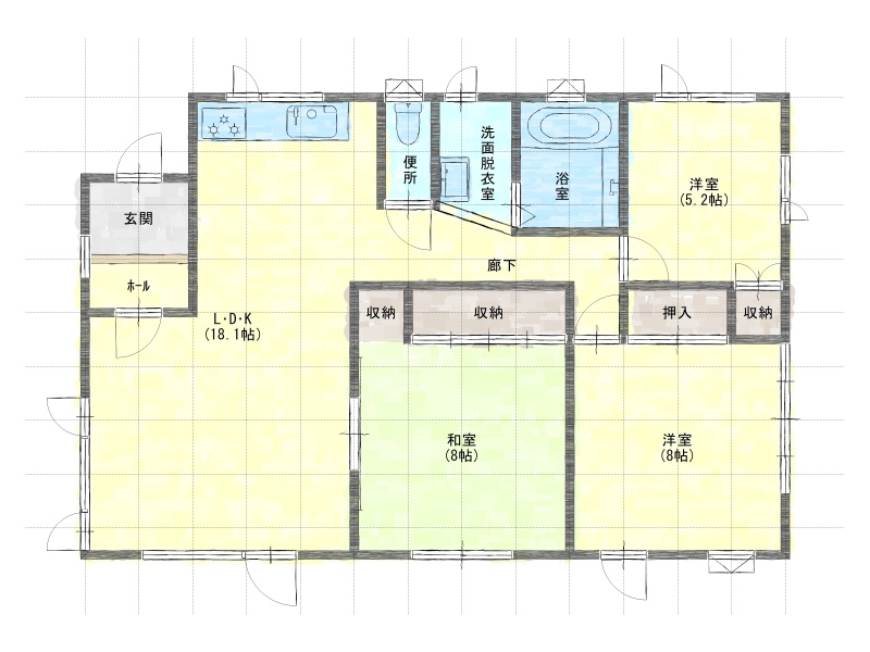 | 間取り | 3LDK1階:和室8帖 洋室8帖 洋室5.2帖 |