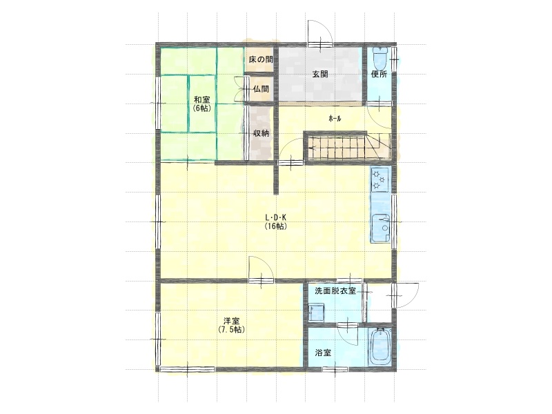 | 間取り | 4LDK1階:LDK16帖 洋室7.5帖 和室6帖 / 2階:洋室12帖 洋室7.5帖 |