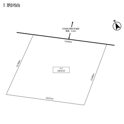 総区画数-/- 接道状況 一方 - 北東側幅6.00mの公道に13.96m接道