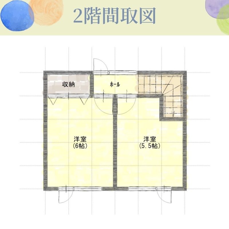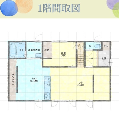 | 間取り | 3LDK1階:LD14帖 K9.5帖 洋室5帖 / 2階:洋室6帖 洋室5.5帖 |