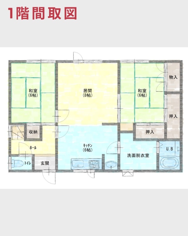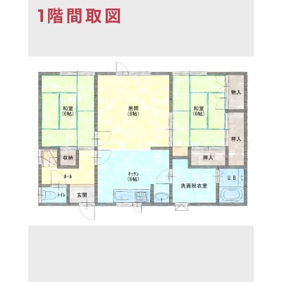 | 間取り | 4LDK1階:K6帖 DK8帖 和室6帖 和室6帖 / 2階:和室5帖 洋室7帖 |