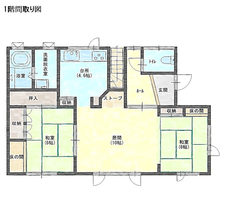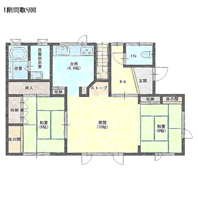 | 間取り | 4LDK1階:L10帖 和室6帖 和室6帖 / 2階:和室6帖 和室6帖 |
