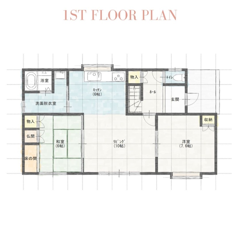 | 間取り | 4LDK1階:L10帖 K6帖 和室6帖 洋室7.6帖 / 2階:洋室6帖 洋室6帖 |