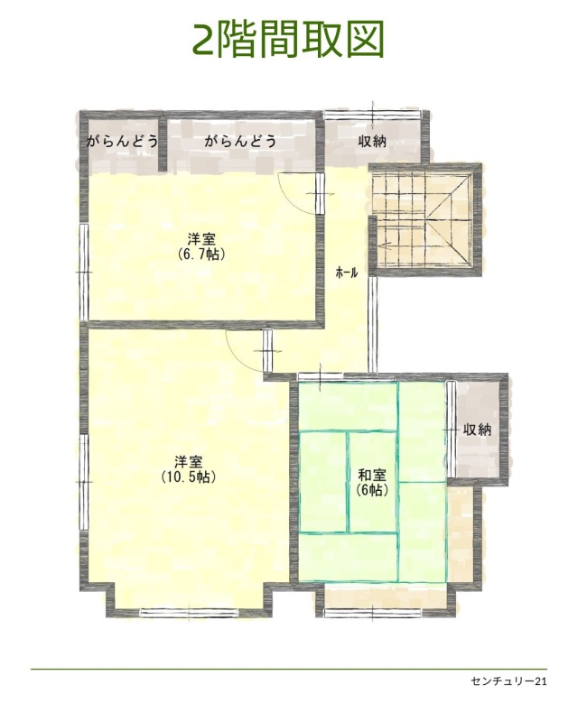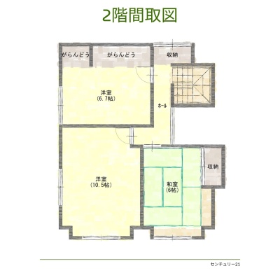 | 間取り | 4LDK1階:洋室6.5帖 L9.3帖 K6帖 / 2階:洋室6.7帖 洋室10.5帖 和室6帖 |