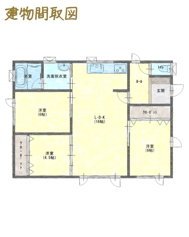 | 間取り | 3LDK1階:LDK16帖 洋室6帖 洋室4.5帖 洋室6帖 |
