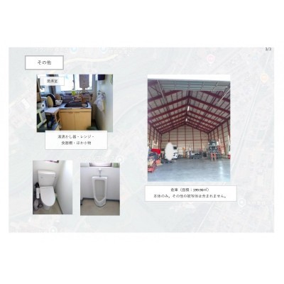 建物の階建 地上1階建 主要採光面 南 構造 鉄骨造 接道状況 三方 - 南西側幅14.00mの公道に58.80m接道 位置指定:無
