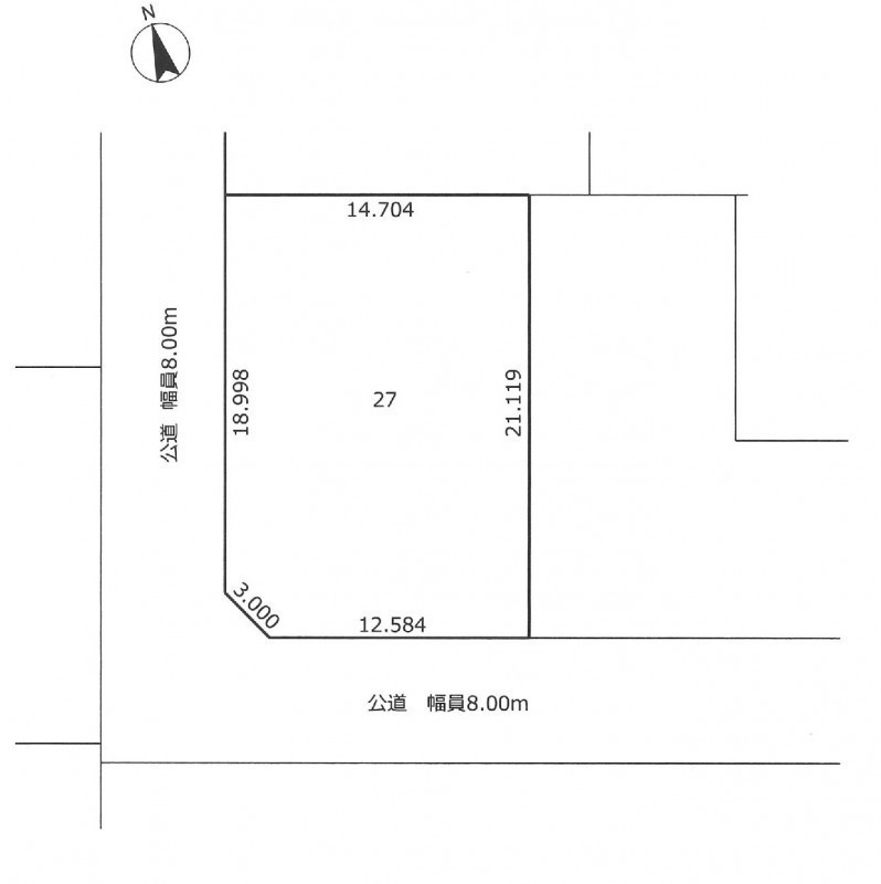 総区画数1区画/- 接道状況 角地 - 西側幅8.00mの公道に18.99m接道