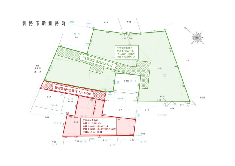 備考 【地番(5-16)、地積(223.85㎡)】と【地番(5-8)、地積(1739.58㎡)の一部を分筆後、既存道路含む(約321.72㎡)】のあわせた土地が売却条件となります。既存道路面積【約140㎡】となります。(既存道路)私道は単独所有となります。法22条区域、宅地造成等工事規制区域、津波災害警戒区域内。現状有姿渡し。※隣地の道路使用承諾条件あり。 学区色がついているアイコンをクリックすると、本物件までの道順を見ることができます。