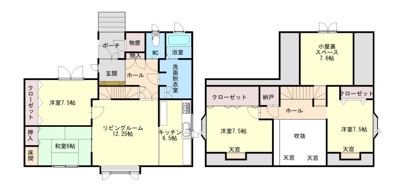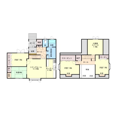 | 間取り | 4LDK2階:洋室7.5帖 洋室7.5帖 / その他:LDK18.75帖 和室6帖 洋室7.5帖 |