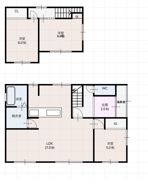 | 間取り | 3LDK1階:LDK21帖 / 2階:洋室6帖 洋室6帖 / その他:洋室5帖 |