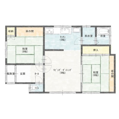 | 間取り | 2LDK1階:K5帖 LD9帖 和室6帖 和室6帖 |