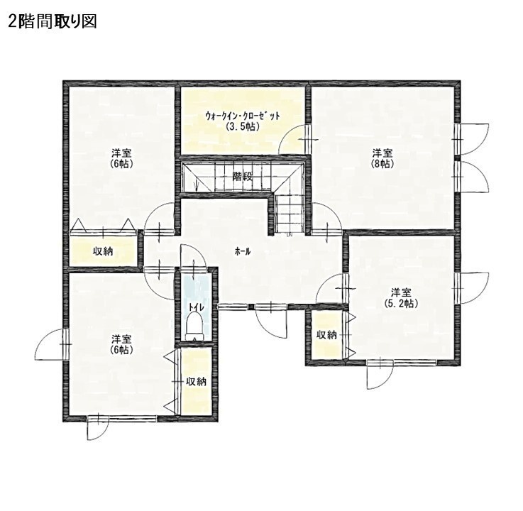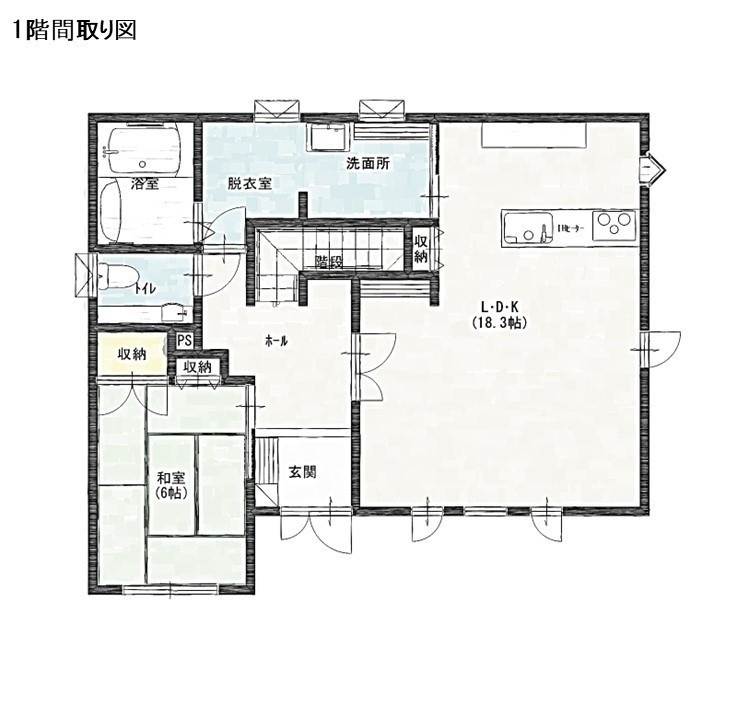 | 間取り | 5LDK1階:LDK18.3帖 和室6帖 / 2階:洋室6帖 洋室6帖 洋室5.2帖 洋室8帖 |