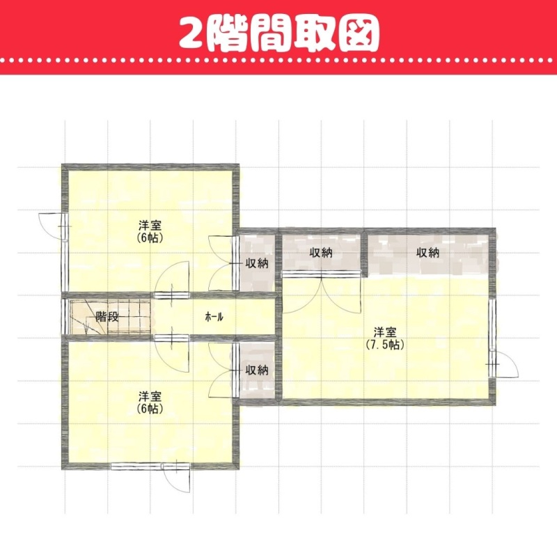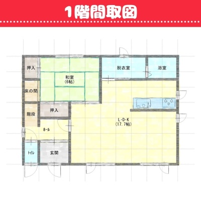 | 間取り | 4LDK1階:LDK17.7帖 和室6帖 / 2階:洋室6帖 洋室6帖 洋室7.5帖 |