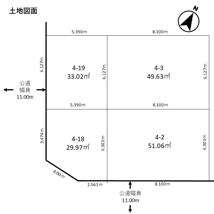 総区画数-/- 接道状況 角地 - 西側幅11.00mの公道に9.60m接道