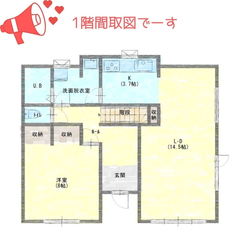 | 間取り | 4LDK1階:LD14.5帖 洋室8帖 / 2階:洋室6帖 洋室6帖 洋室8帖 |