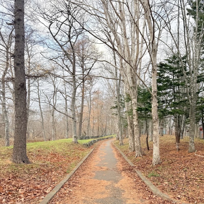 愛国緑地帯の遊歩道 野鳥の鳴き声と森の香りが心地よく、歩きやすいです。(私の足で、1週徒歩30分ほどでした。)