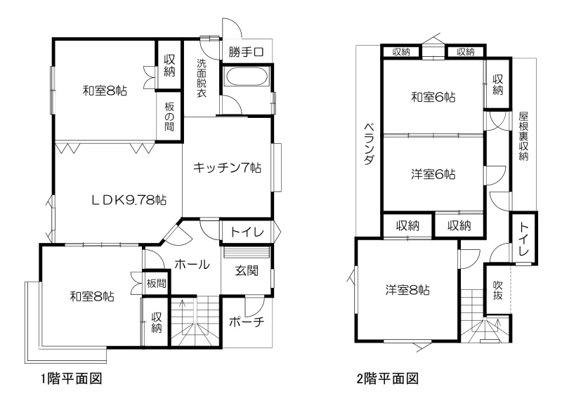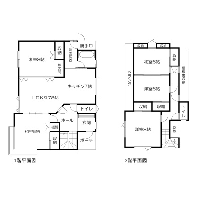 | 間取り | 5LDK1階:LDK9.78帖 和室8帖 K7帖 / 2階:洋室8帖 洋室6帖 和室6帖 / 8階:和室8帖 |