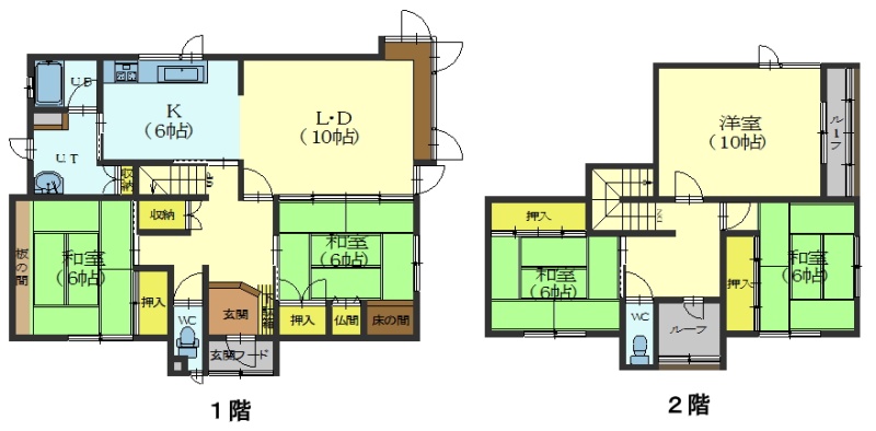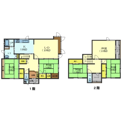 | 間取り | 5LDK1階:LDK16帖 洋室6帖 和室6帖 / 2階:洋室10帖 和室6帖 和室6帖 |