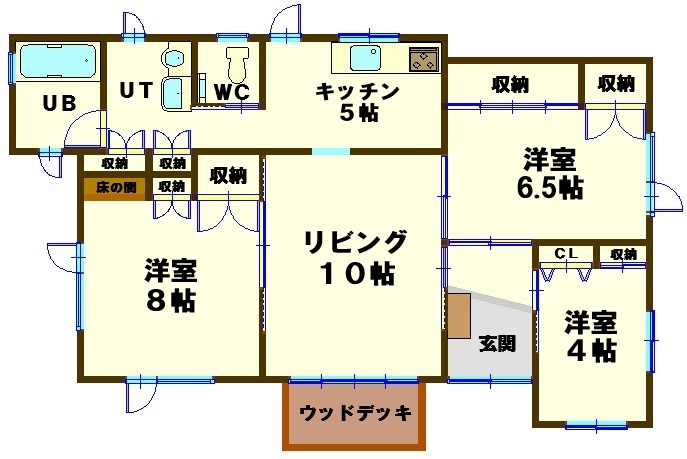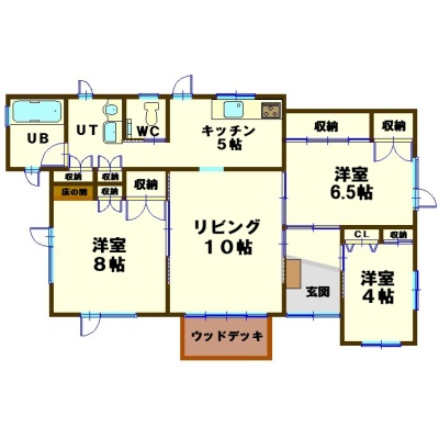 | 間取り | 3LDK1階:L10帖 K5帖 洋室8帖 洋室6.5帖 洋室4帖 |