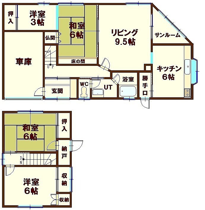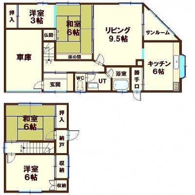 | 間取り | 4LDK1階:LD9.5帖 和室6帖 洋室3帖 K6帖 / その他:洋室6帖 和室6帖 |